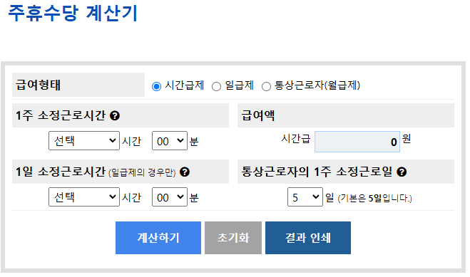 주휴수당 계산기 링크: https://www.nodong.kr/WeeklyHolidayPay